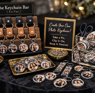 Your favorite photo booth moments—now pocket-sized. Guests can turn their photo booth strips into stylish keepsake keychains on the spot, creating a fun little moment everyone will want to try.